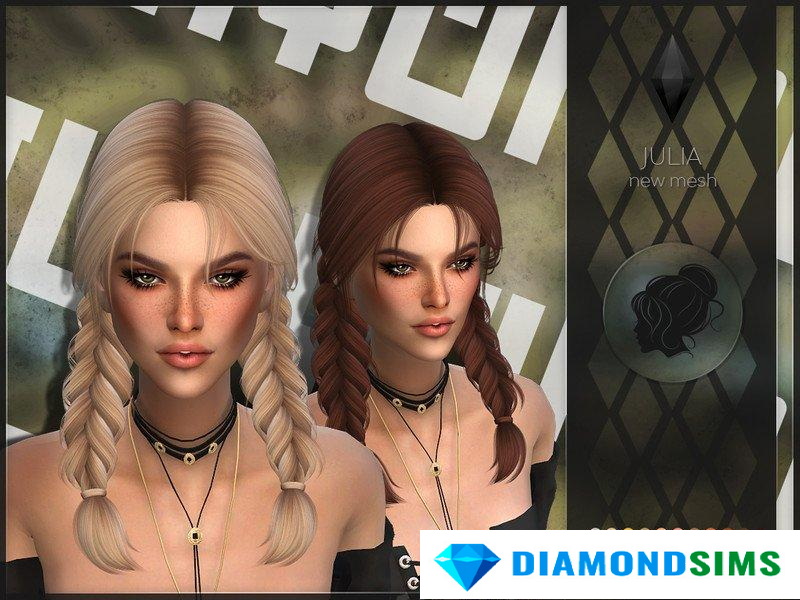 Скачать Две косички на прямой пробор от Nightcrawler Sims для Sims 4: