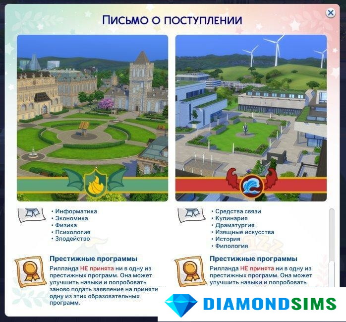 Несмотря ни на что, ваш сим будет принят на все обычные степени в игре. Тем не менее, есть определенные степени, в которых вам будет отказано, если у вас нет необходимых навыков. Подробнее о престижных курсах мы рассказывали отдельно.