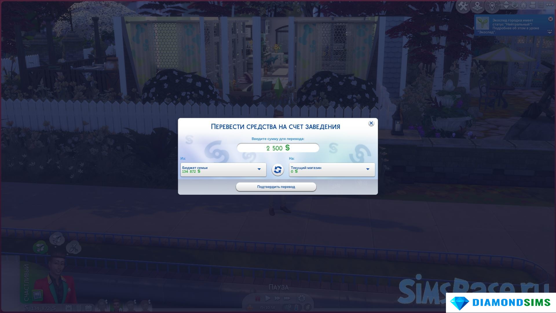 Теперь у вас есть возможность переводить деньги между бизнес-фондом и домашним фондом. Рекомендуется положить немного денег в бизнес-фонд, чтобы иметь возможность дополнительно украсить участок. Если вы перейдете в режим строительства, деньги будут списываться с бизнес-фонда, а не из личных средств.