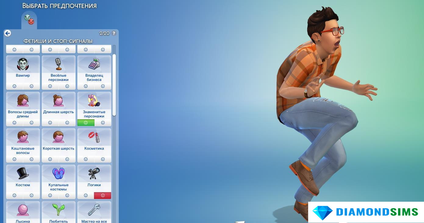 В игре Sims 4 по умолчанию доступны только 20 предпочтений, но мододелы предлагают расширить их разнообразие. Ведь в Sims 2 уже была аналогичная система, позволяющая симам привлекать внимание или отталкивать его в особенном стиле.