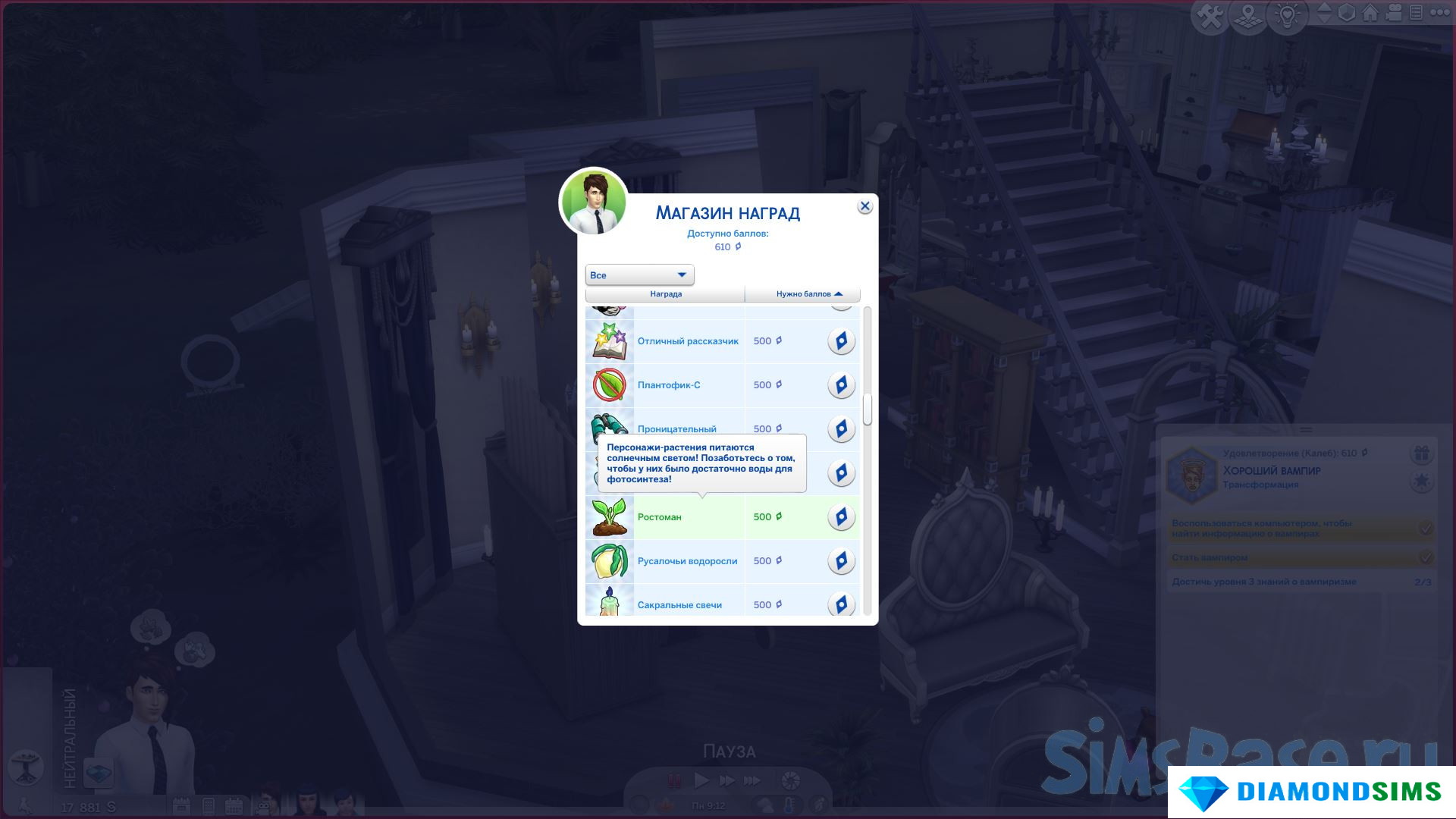 За 500 бонусных баллов вы можете приобрести предмет в магазине наград "Ростоман". Этот предмет добавит "Запретный плод" в инвентарь вашего сима. Просто съешьте фрукт, чтобы стать Ростоманом.