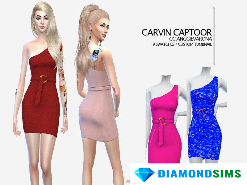Скачать Платье на одно плечо от carvin captoor для Sims 4: