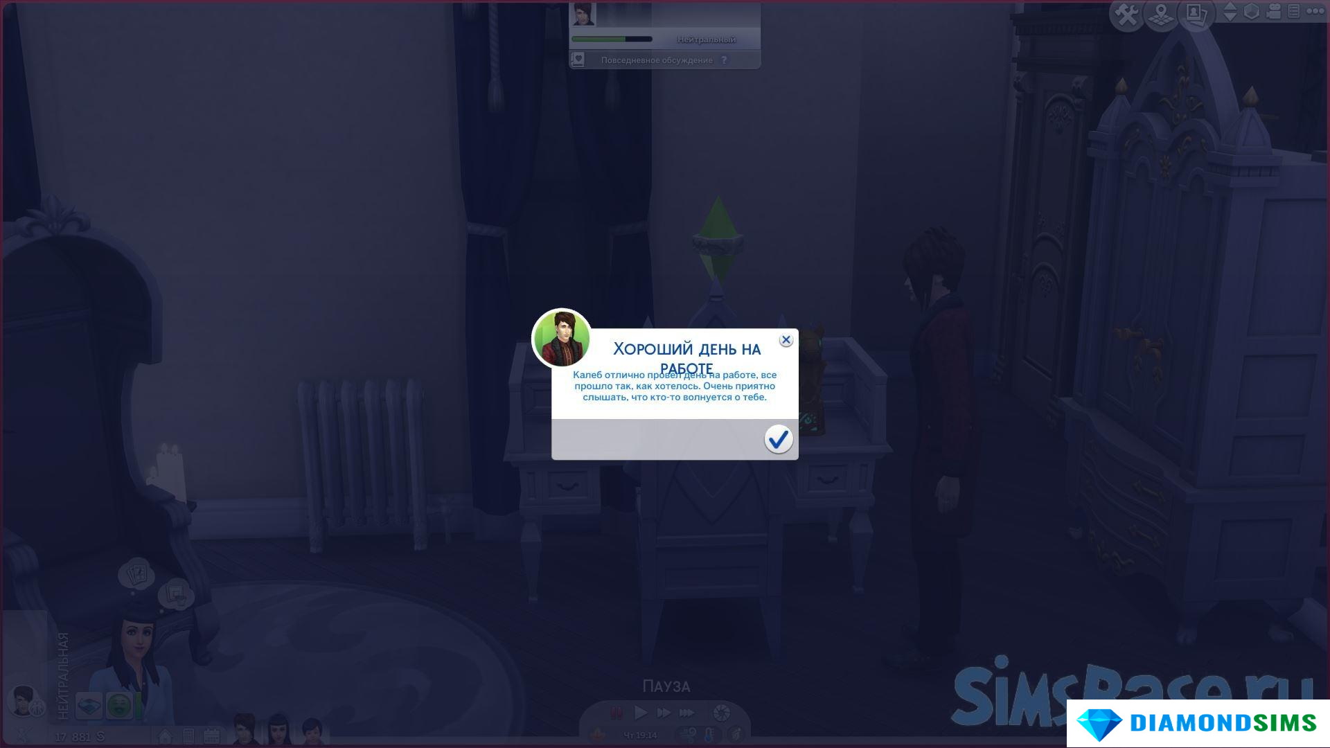 Этот мод внедряет множество новых взаимодействий, мудлетов, баффов и зависимостей друг от друга. Он фокусируется на семейных отношениях, и, по сути, делает разговоры и ответы более реалистичными. Сим может быть недоволен некоторыми вопросами и негативно на них реагировать.