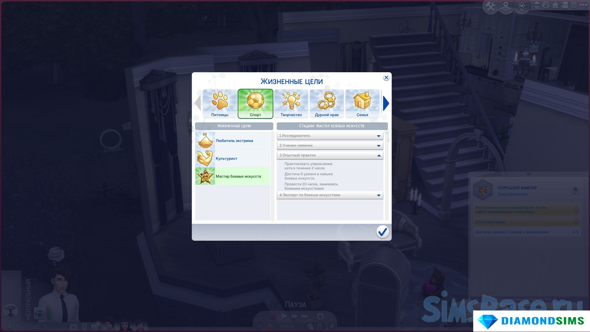 Новая жизненная цель для симов - стать Мастером боевых искусств. Ее достижение дает симу звание "Мастер боевых искусств" и новую черту характера "Просветленный". Черта "Просветленный" позволяет вашему симу лучше контролировать свои потребности, быстрее развиваться и замедлять свое старение. Чтобы использовать эти возможности, вам нужно будет накопить достаточное количество энергии Ци.