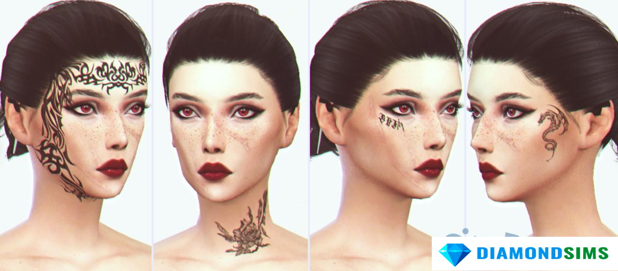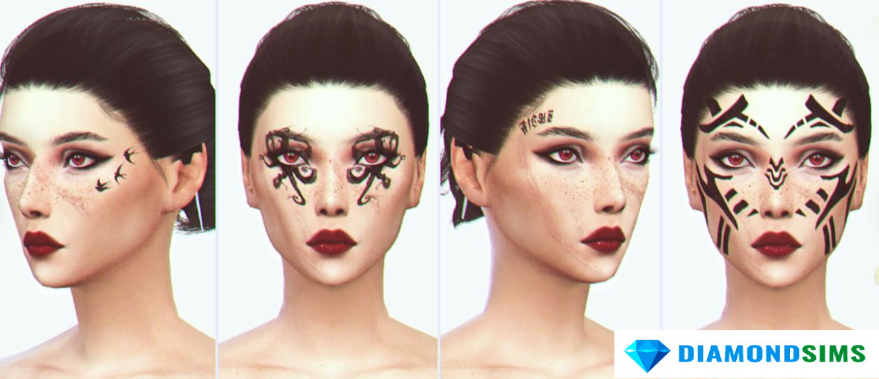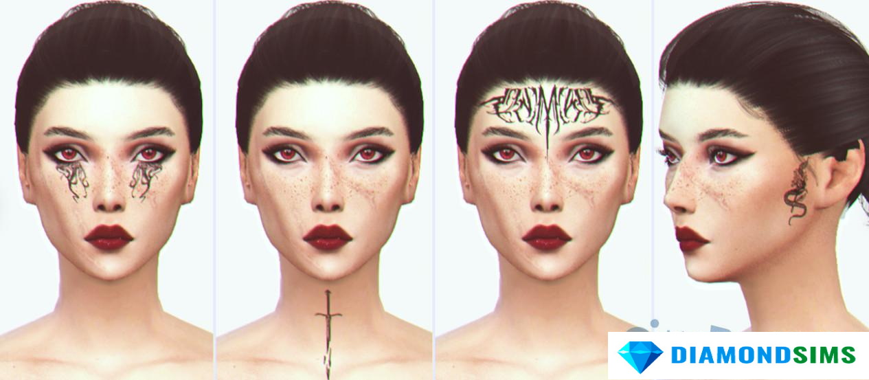 Скачать Набор татуировок для лица из Baldur’s Gate 3 от satterlly для Sims 4: