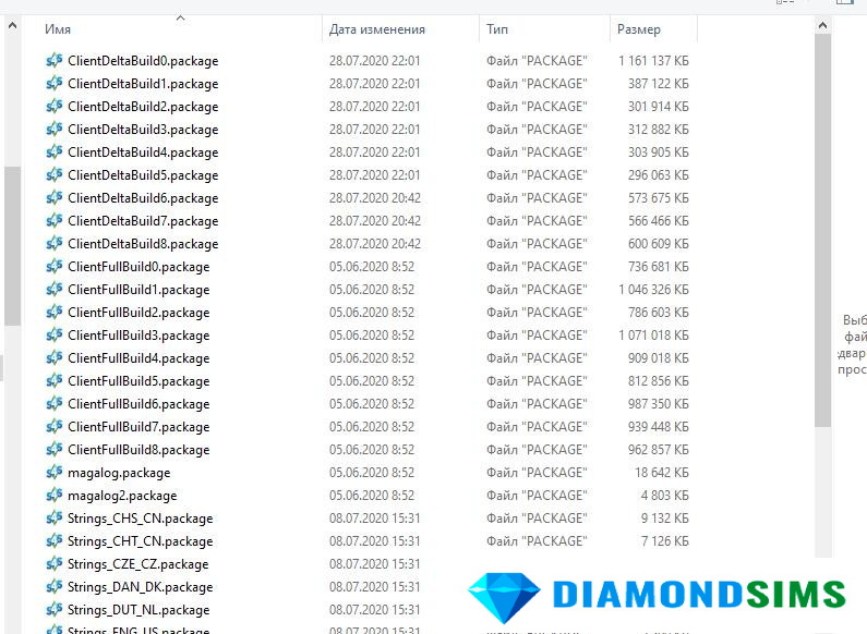 Здесь вы увидите несколько файлов .package, которые именуются как ClientDeltaBuild и ClientFullBuild. Файлы ClientDeltaBuild содержат контент, который был исправлен в базовой игре The Sims 4, а пакеты ClientFullBuild содержат оригинальный контент из базовой игры. Для этого урока мы собираемся открыть ClientFullBuild1. Но музыка находится и в других файлах, поэтому поэтапно вы можете открывать их все.