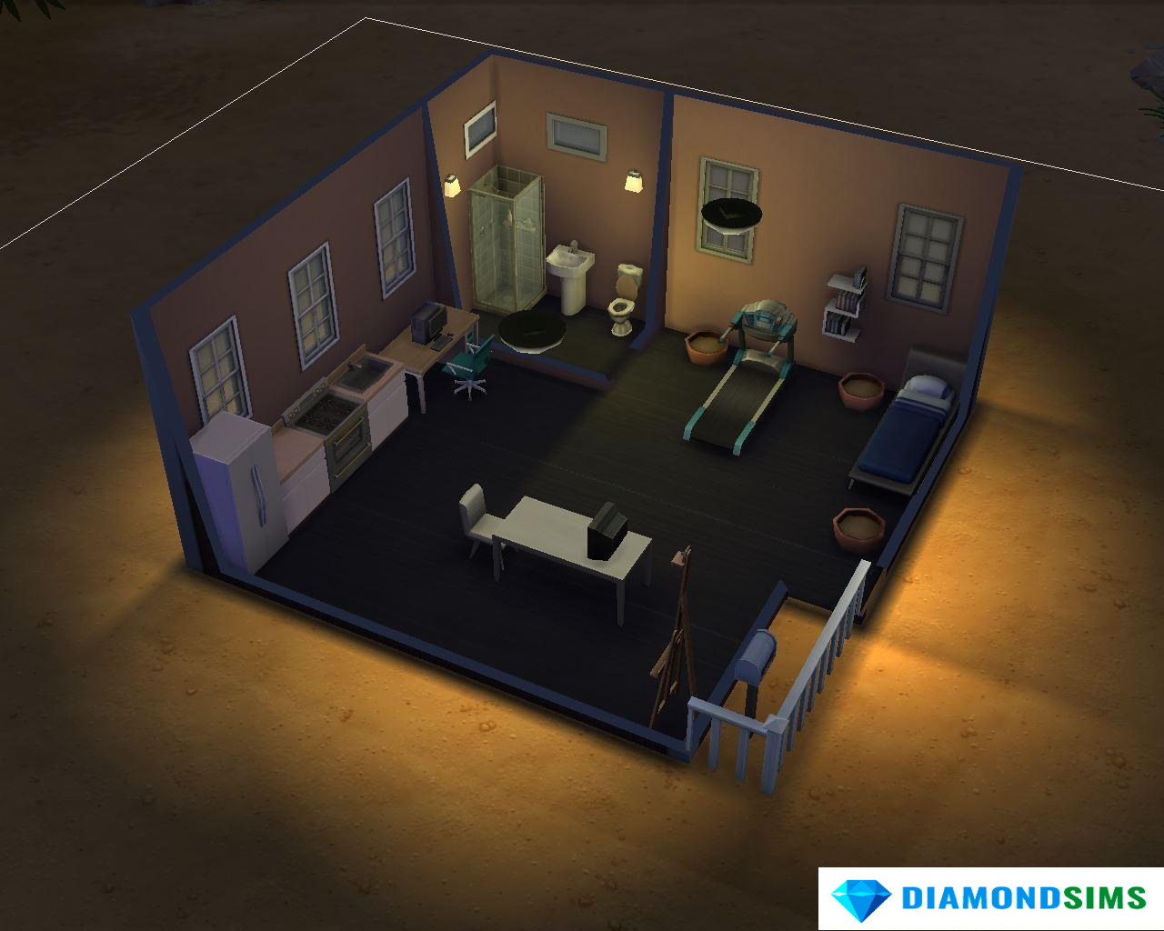 - Выберете любой понравившийся участок и постройте небольшое помещение в 64 клетки (8х8). Это будет дом сима. Дом не обязательно должен быть квадратным, главное, количество клеточек.