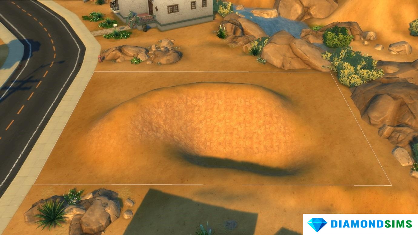 Крутая, неровная земля (склоны) не может быть окрашена. Любой участок вашей местности, который имеет текстуру травы (или текстуру песка в Оазис Спрингс), наоборот, может быть окрашен.