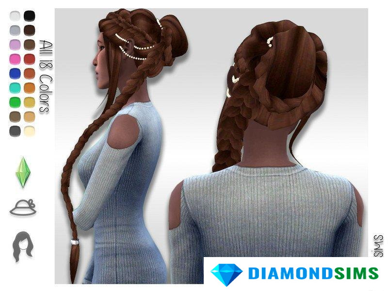 Высокая прическа с жемчужинами и длинной косой, вдохновленная персонажем из игры The Arcana. Вы можете скачать вариант этой прически без косы по ссылке.