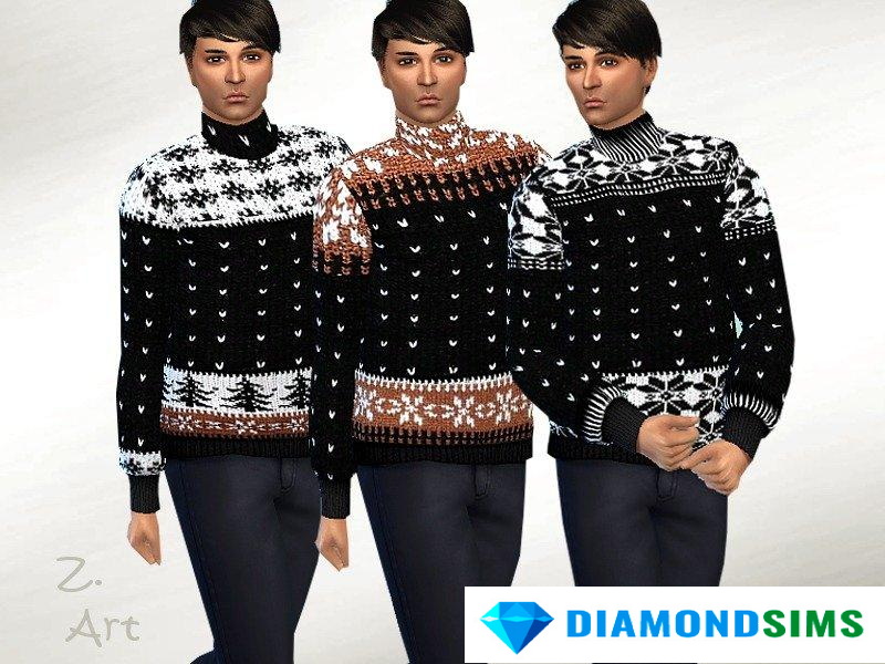Скачать Мужской свитер с зимними узорами от Zuckerschnute20 для Sims 4: