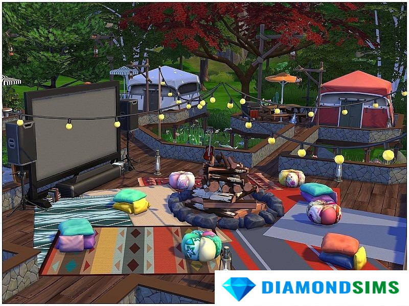 В парке с большим телеэкраном и множеством палаток вы сможете провести незабываемое ночное время. Здесь вы сможете посидеть у костра, посмотреть кинофильм, поиграть на гитаре или прокатиться на велосипеде. Парк находится в Гранит Фоллз и создан без использования CC (пользовательского контента). Однако, для полноценного использования вам необходимы все имеющиеся на данный момент официальные каталоги и наборы, включая "Компактную жизнь".